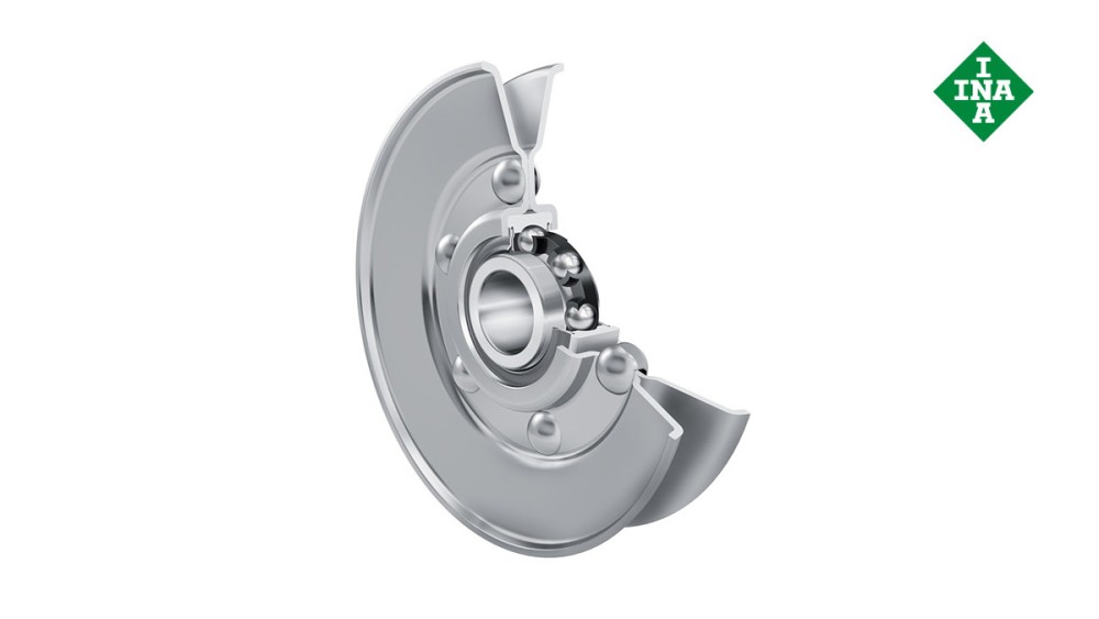 The ready-to-fit units comprise deep drawn, profiled sheet steel pulley halves riveted together and deep groove ball bearings. Pulleys of larger diameters are additionally welded together. A lead chamfer on the pulley profile prevents damage to the belt. Due to the sheet steel construction, the additional rotating masses and the out-of-balance masses generated are low.